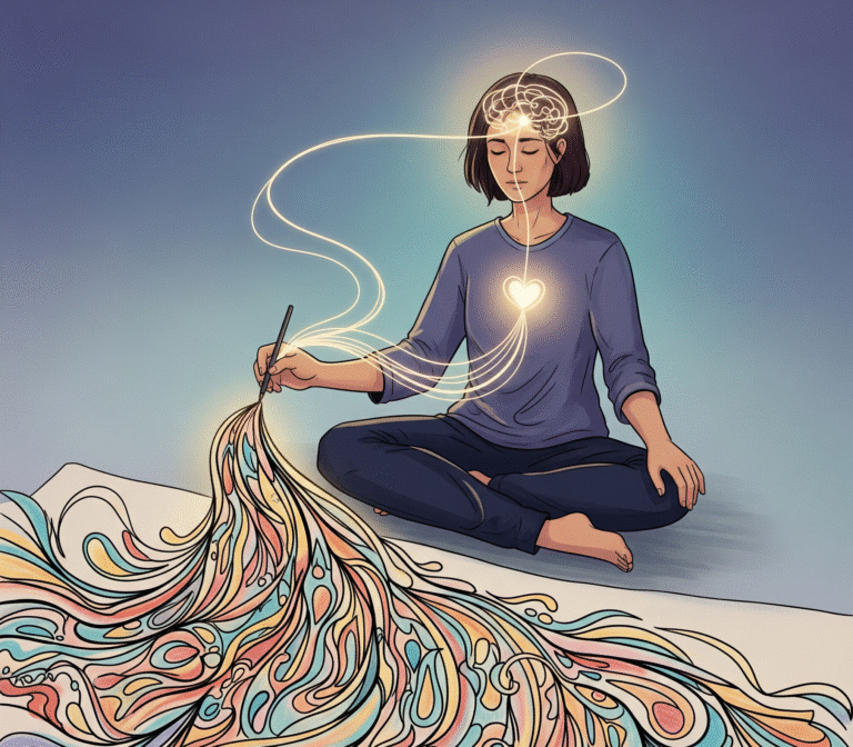 Se invita a los participantes a sentir sus manos sus dedos, el lápiz o pincel, a percibir el olor del material, a escuchar el sonido del trazo. Esto ancla la mente en el presente.