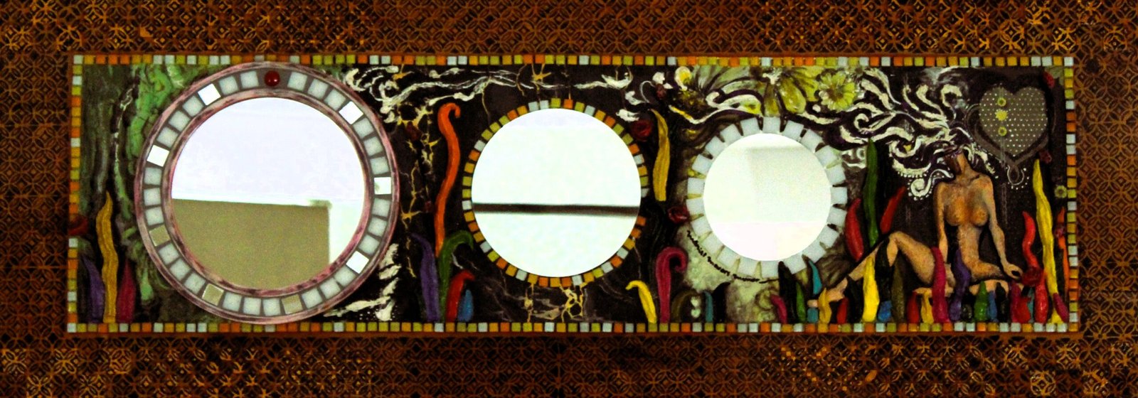 Y yo con mucho respeto, los tomo prestado para interpretarlos con materiales de esta época texturas de piedra cementicia pintados con acrílico, oleos y barnices