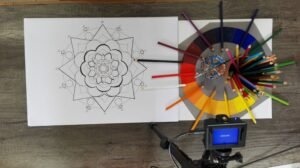 1 Lámina creando un Mandala Artístico: Título Opuestos/Complementarios esta será Tu primer lámina donde realizamos un mandala nacido del Punto Anclaje de tu Ser.